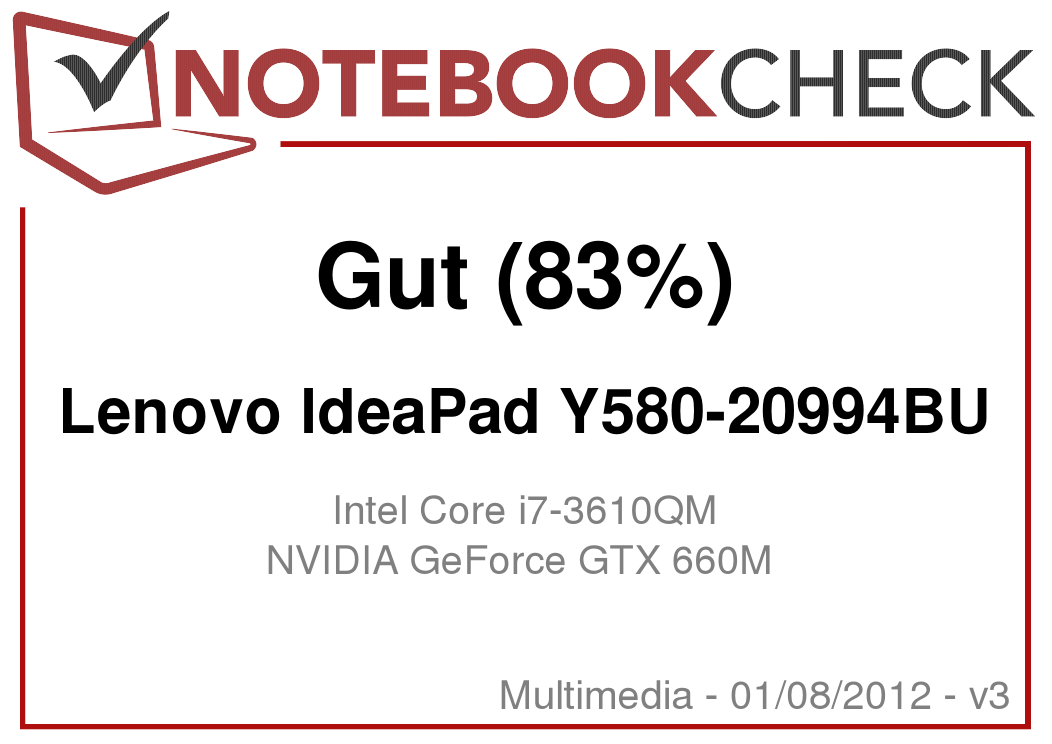 Wir können das Y580 über weite Strecken loben. Die GTX 660M bringt die erwartete gute Gaming-Performance und auch die Ivy Bridge-CPU sollte mit allen Anforderungen an einen Heimcomputer zurechtkommen. Zudem schneidet die Tastatur überdurchschnittlich gut ab.