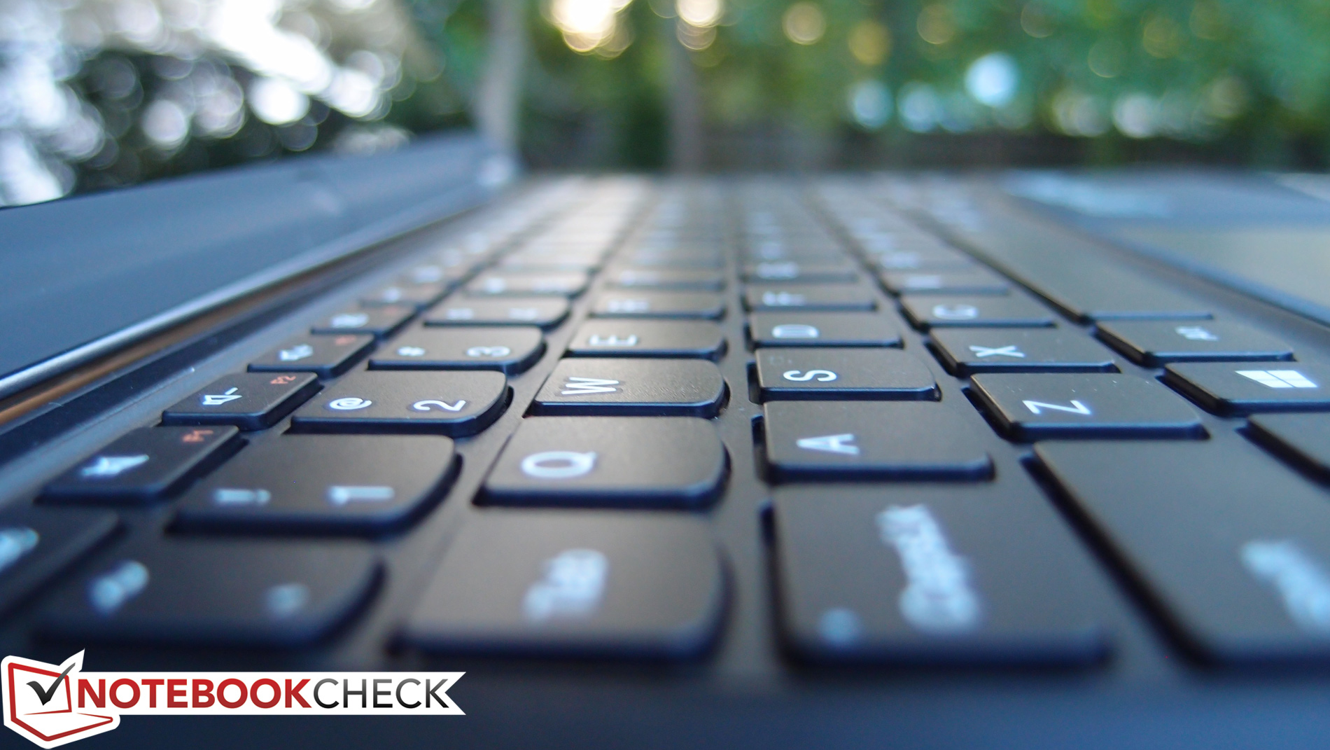 Ein Grund, diese halbherzige Version der AccuType Tastatur zu verbauen, ist, dass sich die Tastatur oft an der Unterseite des Yoga wiederfindet und daher im umgebenden Gummi-Fach versenkt werden muss. Es hätte uns trotzdem gefallen, eine Tastatur ähnlicher jener im ThinkPad Helix vorzufinden.