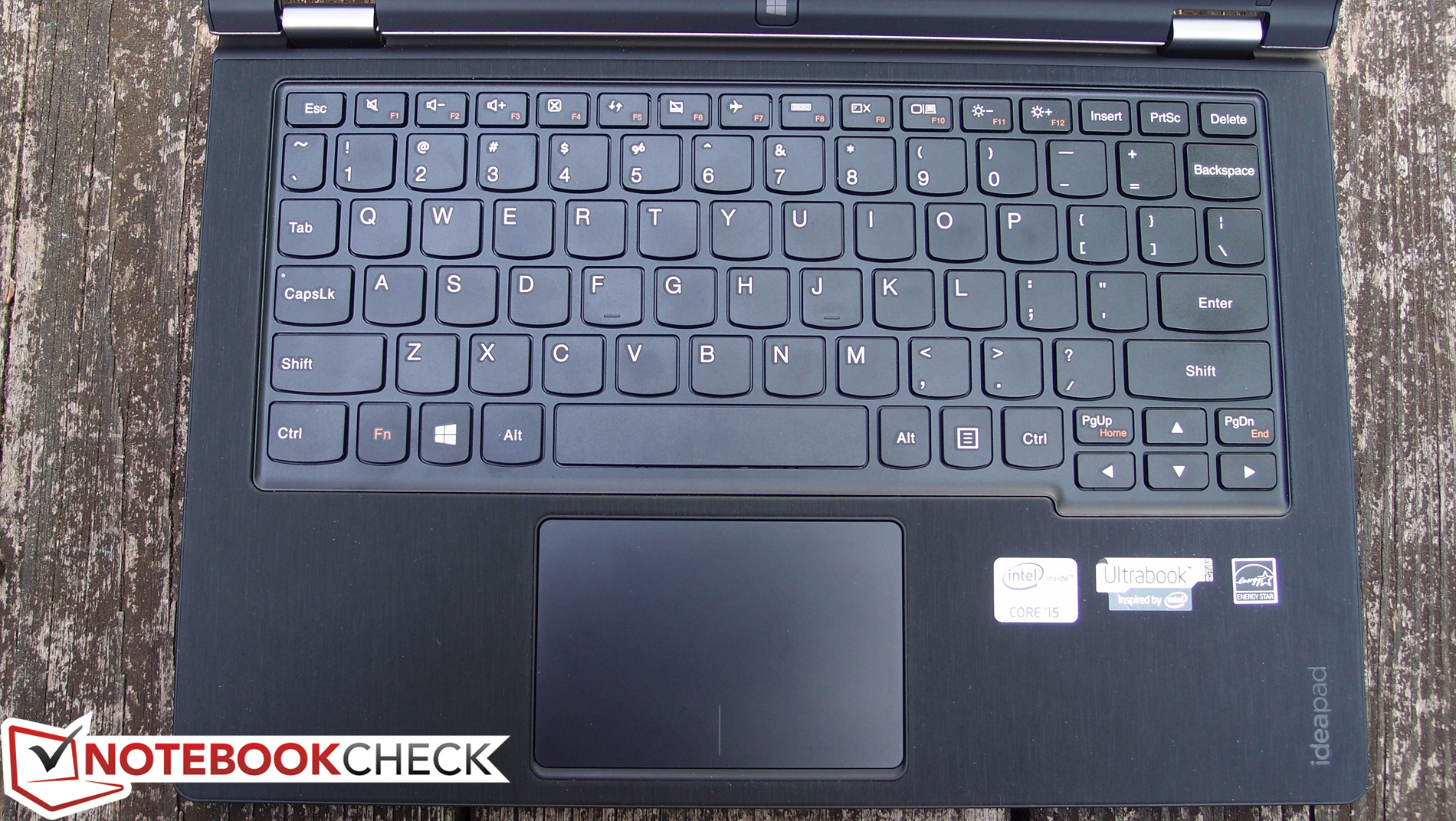 Unabhängig von den gemischten Gefühlen, die Kunden gegenüber Lenovos AccuType Tastatur hegen, handelt es dem Vernehmen nach um eine ausgezeichnete Tastatur. Jene vom Yoga 11S ist jedoch wegen der schlankeren Bauweise keine vollwertige Version. Die Tasten weisen eine rauere Kunststoffoberfläche auf, und trotz Vollgröße sind Hubweg und Feedback nicht mit Tastaturen von größeren IdeaPad und ThinkPad Modellen vergleichbar. Der Tastendruck ist ein bisschen weich. Zudem hat die Tastatur keine Hintergrundbeleuchtung.