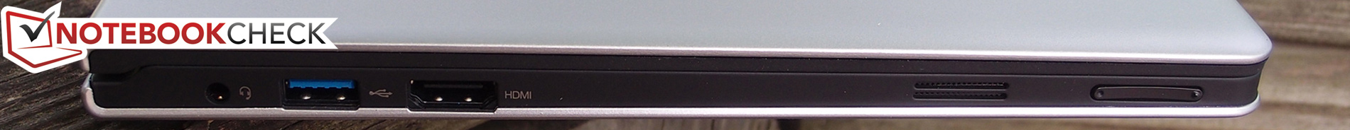 Im Vergleich zum Vorgänger hat sich an der Schnittstellenausstattung beim Yoga 11S wenig verändert. Noch immer stehen HDMI, ein Kartenleser und zwei USB-Ports, nun erfreulicherweise USB 3.0, zur Verfügung: insgesamt Standard-Kost für ein Ultrabook, doch sicherlich eine gute Auswahl für ein Tablet.