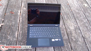 Es handelt sich um einen 10-Punkt-Multitouch-Bildschirm (vs. 5-Punkt im Yoga 11) und er funktioniert gut. Alle Einzelheiten von Präzision bis zu Gesten klappen wie erwartet, und der Drehsensor leistet auch gute Arbeit.