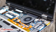 Aktuell ist das Yoga 11S wahlweise mit 128 GB oder 256 GB SSD verfügbar. In unserem Testmodell ist ein 256-GB-Modell, nämlich eine Samsung PM841 Serie MZMTD256HAGM-000L1 SSD verbaut. Das Laufwerk verbucht sehr gute Leistungswerte. Wenngleich sie zu den besten SSDs gehört, ist sie für ein Ultrabook ausreichend schnell. Ein Massenspeichertausch ist nicht einfach, denn dazu müssen das Gerät fast vollständig zerlegt und zirka 20 Torx Schrauben entfernt werden.