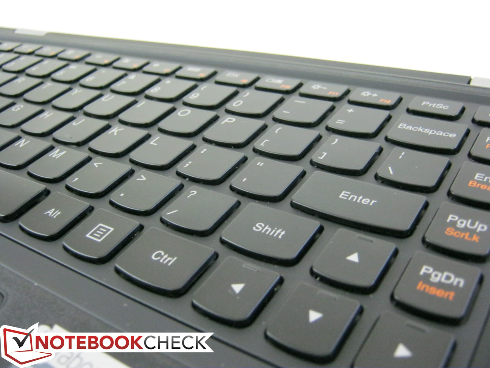 Die Chiclet AccuType Tastatur, die auch in den jüngsten ThinkPad Modellen verwendet wird, findet sich auch im Yoga 13. Die Größe (27,5 cm x 10,0 cm) ist angemessen und der Abstand zwischen den Tasten gleichmäßig. Selbst die Cursor-Tasten, die oft bei Notebooks dieser Kategorie verkleinert werden, haben volle Größe. Eine Hintergrundbeleuchtung, die wir uns in dieser Preisklasse erwartet hätten, bietet das Yoga indes nicht.