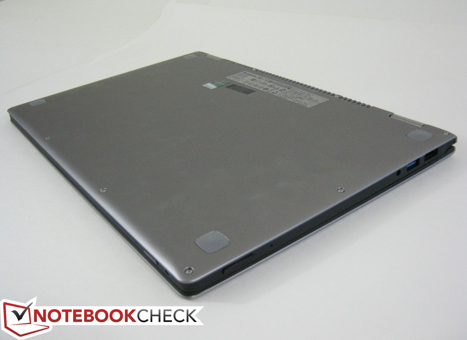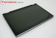 Nutzern wird zu allererst das Gewicht auffallen. Mit zirka 1,55 kg gehört das Yoga 13 zu den schwereren 13-Zoll-Ultrabooks. Das Convertible ist etwa 100 bis 200 Gramm schwerer als die Konkurrenten, beispielsweise HPs Spectre XT 13, Dells XPS 13 und Asus' Zenbook UX32A und übertrifft das superschlanke Samsung 900X3B Series 9 um satte 400 Gramm. Die Vielseitigkeit wurde also mit einem etwas dickeren und schwereren Gehäuse erkauft.