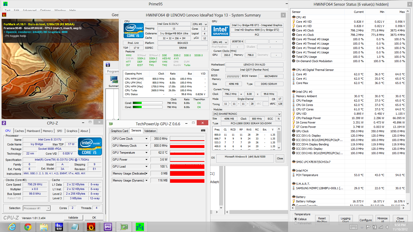 Mit Hilfe von Prime95 und FurMark wird ein Stressszenario simuliert und der CPU-/GPU-Status mit verschiedenen Tools beobachtet.