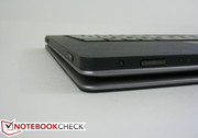 Einige bei Tablets übliche Tasten teilen sich den Platz mit den Ports. Ein Lautstärkeregler, eine Bildschirmsperre und sogar der Stromschalter und der OneKey Recovery Button befinden sich an den Seitenkanten. Obwohl die Tasten verglichen mit dem Formfaktor klein sind, bieten sie eine Grundfunktionalität im Tablet-Modus. Ein Helligkeitsregler zur schnellen Anpassung der Helligkeit wäre darüber hinaus wünschenswert gewesen.