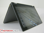Das Yoga 13 ist der vorsichtige Versuch, eine einzigartige Ultrabook-Convertible-Klasse zu kreieren. Die patentierten Scharniere sind in der Tat eine Innovation und die Tabletfunktionalität klappt wunderbar, zumindest sobald man sich an die ungleichmäßige Gewichtsverteilung gewöhnt hat. Verglichen mit Tablets ist der Umgang schwieriger (Abmessungen, Gewicht), doch die Dualität und Vielseitigkeit des Yoga in Kombination mit Windows 8 machen das Device spannend.