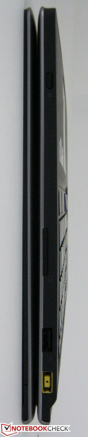 Wir sind etwas davon enttäuscht, dass einige grundlegende Schnittstellen beim Yoga fehlen, nämlich der Ethernet Port und ein Kensington Lock. Der VGA-Ausgang ist ebenso verschwunden, und es bleibt für die Bildausgabe einzig ein HDMI-Ausgang. Erwähnenswert sind weiters die beiden USB Ports, wobei es sich nur bei einem um USB 3.0 handelt. Es erübrigt sich daher die Feststellung, dass die Anschlussmöglichkeiten ohne externen Hub oder Adapter begrenzt sind.