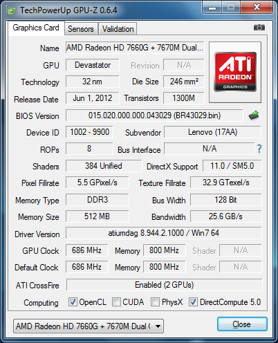 | Lenovo IdeaPad Z585 Radeon HD 7660G + HD 7670M Dual Graphics, A10-4600M, Seagate Momentus SpinPoint M8 ST1000LM024 | Acer Aspire V3-551G-10468G50Makk Radeon HD 7660G + HD 7670M Dual Graphics, A10-4600M, Seagate Momentus 5400.6 ST9500325AS | Samsung 355V5C-S05DE Radeon HD 7520G + HD 7670M Dual Graphics, A6-4400M | AMD Pumori Platform A10-4600M Radeon HD 7660G, A10-4600M, Samsung SSD 830 Series MZ-7PC0128D/EU | |