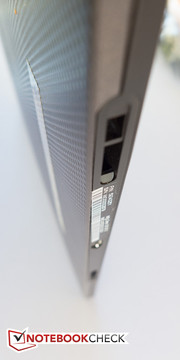 Ein Micro-HDMI-Port, eine 3,5-mm-Kopfhörer-Mikrofon-Kombibuchse und ein MicroSD-Kartenslot runden die Schnittstellenauswahl ab. Adapterkabel auf HDMI in voller Größe oder VGA werden nicht mitgeliefert und müssen separat gekauft werden. Der MicroSD-Kartenslot ist hinter einer Abdeckung versteckt und daher nicht leicht zugänglich. Wir hatten auch einige Probleme, eine eingesteckte Karte wieder zu entfernen. Lenovo liefert einen "MicroSD-Hebelstift" als Entfernungshilfe mit.