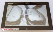 Das Lenovo IdeaTab Lynx K3011 hat einen kapazitiven Touchscreen, der 5-Punkt-Eingabe unterstützt. Daher können auch mehrere Finger gleichzeitig zur Steuerung benutzt werden. Während des Testzeitraums traten keine Probleme mit seiner Leistungsfähigkeit auf: Das Tablet reagiert schnell und präzise auf Streifen und Tippen. Navigieren ist am Windows 8 Desktop etwas schwieriger, da es - vor allem mit größeren Fingern - nicht so einfach ist, die kleineren Menü-Einträge zu erwischen. Hier schaffen eine Bluetooth-Maus oder das externe Tastatur-Dock mit eingebautem Touchpad etwas Abhilfe. Eingabe mittels aktiven Stylus (Standard beim Dell Latitude 10 Tablet, optional beim ThinkPad Tablet 2) wird nicht unterstützt.