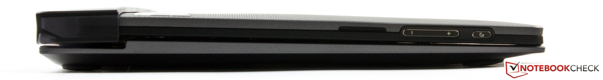 Die Abmaße des Tablets sind 300,9 x 188 x 9,48 mm und wachsen im Verbund mit dem Dock auf 305 x 204 x 26 mm an. Das Gewicht summiert sich auf 1.295 Gramm (Tablet: 632 g, Dock: 663 g). Damit ist das Lynx das größte im Vergleichsfeld. Das Samsung XE500T1C (304 x 189,4 x 20,5 mm; 1.455 g) und das HP Envy x2 (303 x 206 x 19 mm; 1.410 g) verfügen über ähnliche Maße. Nur das Acer W510 (187 x 259 x 9,9 mm; 1.266 g) fällt durch seine besonders flache Bauweise auf. Die Akkus unseres Testgerätes sind fest verbaut und lassen sich nicht austauschen. Alle Geräte arbeiten dank des Atom-SoCs lüfterlos und sind daher geräuschlos.