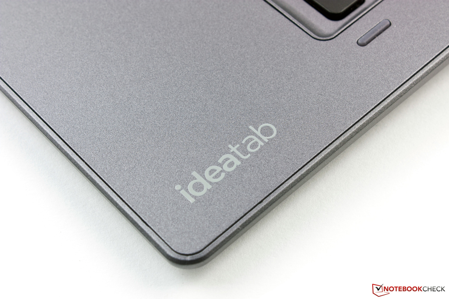 Das Tablet besteht vollständig aus Fiberglas und Kunststoff. Das Material ist auf der Rückseite grau gefärbt und texturiert, letzteres erhöht die Griffigkeit des Lynx erheblich. Optisch macht das Gerät zunächst einen guten Eindruck, doch haptisch fühlt es sich sehr billig an. Der getrübte Eindruck durch die mittelmäßige Materialauswahl wird durch die relativ scharfen Kanten nicht verbessert. Es knarzt jedoch nichts und die Verwindungssteifheit des Gerätes ist ordentlich.