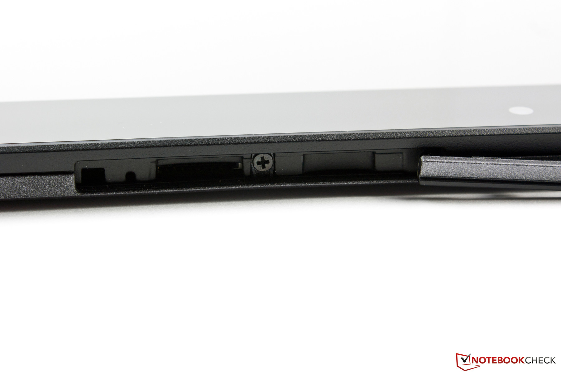 Ein wichtiger Bestandteil des Convertibles ist das am Dock angebrachte Scharnier, mit dem die beiden Komponenten verbunden werden können. Das Gelenk selber besteht aus Metall und hinterlässt einen soliden Eindruck. Ein klobig wirkender Rahmen aus halbtransparentem Kunststoff führt das Tablet in die richtige Position, wirkt aber etwas instabil. Einmal eingesetzt, sind beide Teile fest miteinander verankert. Das Tablet lässt sich zwar immer noch leicht hin und her bewegen, vermittelt aber keineswegs den Anschein, es könne herausfallen. Das IdeaTab Lynx besitzt keinen Docking-Port, sondern verwendet den vorhandenen Micro-USB-Anschluss als Schnittstelle zum Tastatur-Dock.