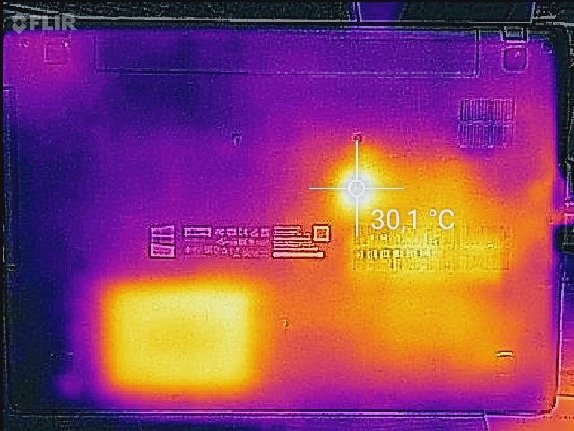 (±) Auf der Unterseite messen wir eine maximalen Wert von 42.5 °C (im Vergleich zum Durchschnitt von 36.8 °C).