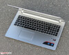 Das Ideapad ist mit einer unbeleuchteten Tastatur ausgestattet. Die flachen, leicht angerauten Tasten verfügen über einen kurzen Hub und einen klaren Druckpunkt. Während des Tippens wippt die Tastatur in einigen Bereichen deutlich. Dieses Nachgeben führt zu einem schwammigen Tippgefühl. Hier hätte Lenovo zwei, drei zusätzliche Schrauben zur Befestigung der Tastatur vorsehen sollen. Die Tastatur genügt insgesamt den Anforderungen an den Hausgebrauch. Für Vielschreiber ist sie nicht geeignet.