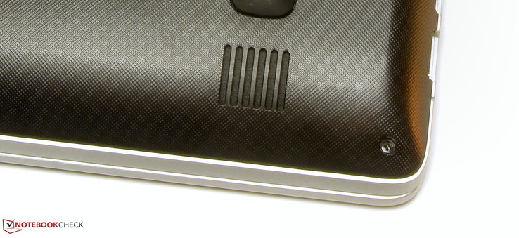 Die Verarbeitung geht weitgehend in Ordnung. Gelegentlich stimmen die Spaltmaße nicht. Auch in Sachen Stabilität leistet sich das Notebook keine gravierenden Schwächen. Links und rechts neben der Tastatur sowie unterhalb des Touchpads kann das Gehäuse durchgebogen werden - das ist bei den meisten Notebooks der Fall. Die Baseunit ist für unseren Geschmack ein wenig zu stark verdrehbar. Hier hätten wir eine höhere Steifigkeit erwartet. Das gilt insbesondere auch für den Deckel. Druck auf die Deckelrückseite führt zu Bildveränderungen. Die Scharniere halten den Deckel fest in Position und wippen etwas nach. Eine Ein-Hand-Öffnung des Deckels ist möglich.