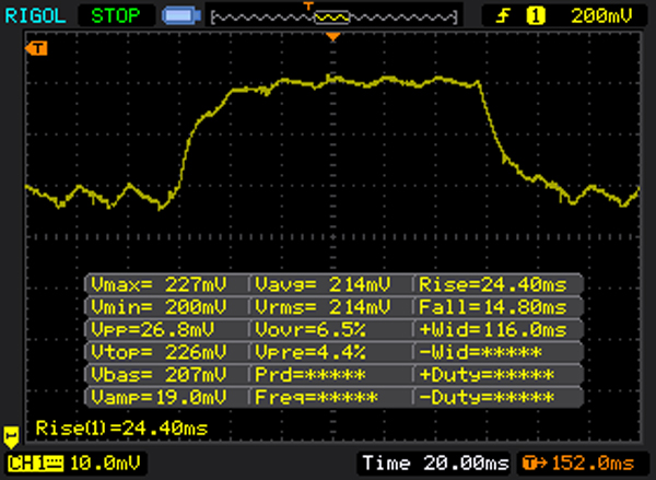 | 29 ms ... steigend ↗ und fallend ↘ kombiniert | ↗ 14 ms steigend | |