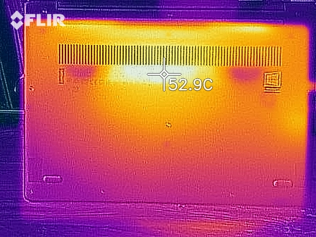 (±) Auf der Unterseite messen wir eine maximalen Wert von 42 °C (im Vergleich zum Durchschnitt von 36.8 °C).