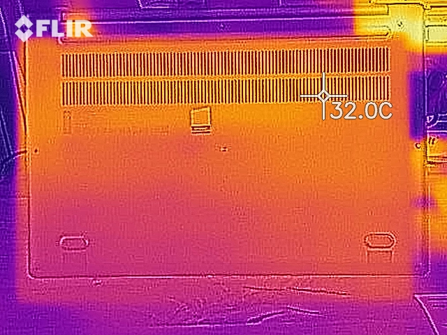 (+) Die Handballen und der Touchpad-Bereich sind mit gemessenen 31.8 °C kühler als die typische Hauttemperatur und fühlen sich dadurch kühl an.