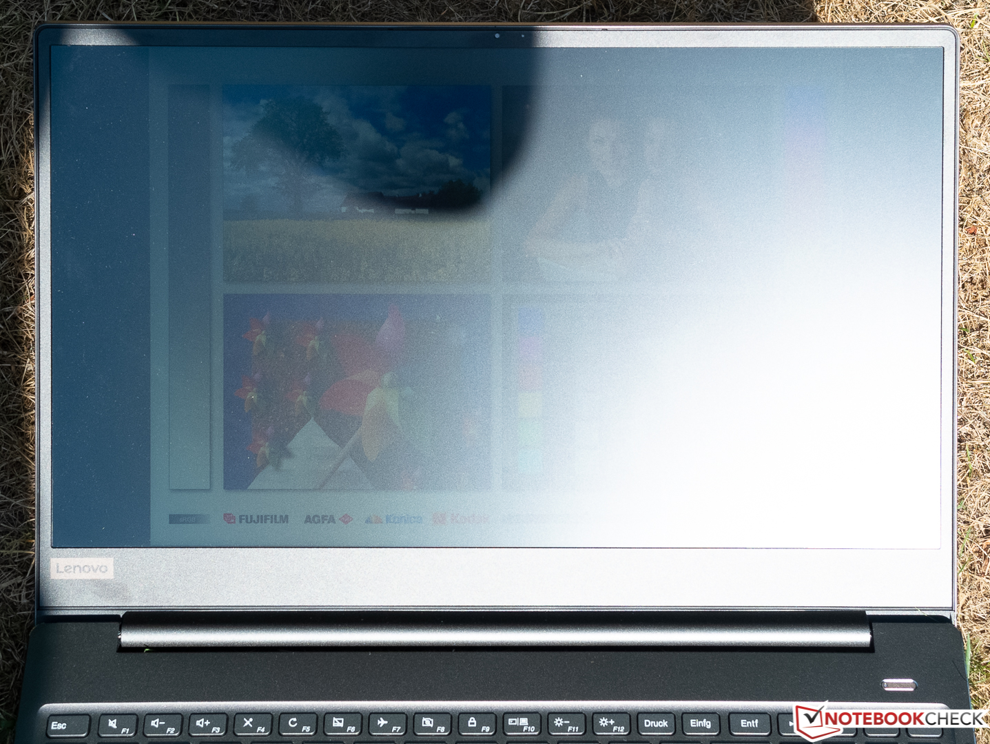 Mit 83 % fällt die gemessene Ausleuchtung leicht unterdurchschnittlich aus, deutlich besser macht es unter den Konkurrenten in diesem Test aber auch nur das HP Spectre. In einem abgedunkelten Raum sieht ein völlig schwarzes Bild recht scheckig aus. Besonders am oberen und unteren Rand zeigen sich deutliche Ansätze von Screen Bleeding, die etwa bei der Wiedergabe von Filmen mit schwarzen Balken schon auffallen können, bei normalen Bildschirminhalten aber nicht zu sehen sind.
