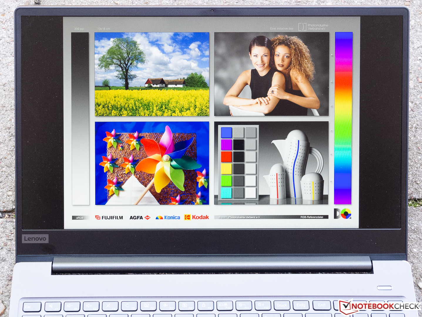 Wenn man im Hinterkopf behält, dass Farbabweichungen von Delta-E 3 oder weniger vom menschlichen Auge nicht mehr wahrgenommen werden können, schlägt sich unser Lenovo-Notebook mit Ergebnissen von Delta-E 3,73 (ColorChecker) und Delta-E 3,96 (Graustufen) schon mal ziemlich gut und wird im Testfeld nur vom in dieser Hinsicht bereits im Auslieferungszustand nahezu perfekten Dell XPS 15 2018 getoppt.