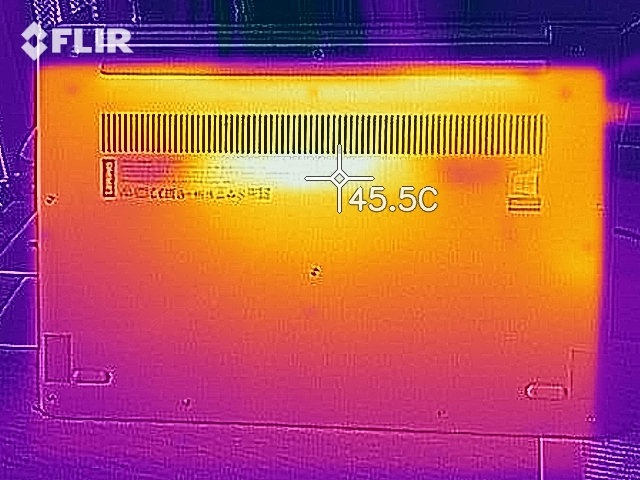 Im Gegensatz zu unserem Test-Ideapad mit Intel-Prozessor fühlt sich das aktuelle Testgerät bereits kurz nach dem Systemstart warm an. Auch bei geringer Auslastung des Systems läuft der Lüfter und die Oberflächentemperaturen von über 30 °C sind deutlich zu spüren. Dabei wird der Laptop aber nicht heiß, sondern bleibt kontinuierlich warm.