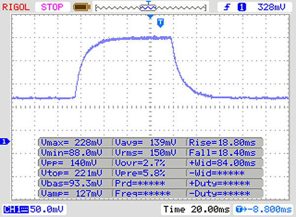 | 36 ms ... steigend ↗ und fallend ↘ kombiniert | ↗ 18 ms steigend | |