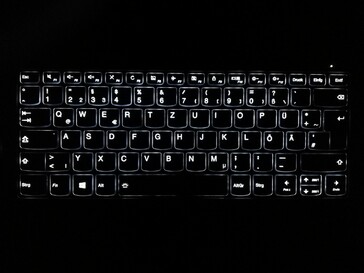 Die Tastatur des Ideapad S530 bietet große Tasten mit einem angenehmen Druckpunkt. Dadurch können auch Vielschreiber noch nach längerer Zeit mit präzisen Eingaben und einem guten Tastenfeedback rechnen. Während die Sondertasten zwar kleiner, aber ebenfalls noch gut zu erreichen sind, stehen Form und Anordnung der Pfeil-nach-oben- und Pfeil-nach-unten-Tasten einer schnellen Betätigung im Weg. Für die Arbeit unter schlechten Lichtverhältnissen können Nutzer eine zweistufige Tastaturbeleuchtung zuschalten, deren Helligkeitsunterschiede aber kaum wahrnehmbar sind. Bei eingeschalteter Beleuchtung werden alle Tasten gut und gleichmäßig beleuchtet, sodass dennoch präzise Schreibarbeiten möglich sind.