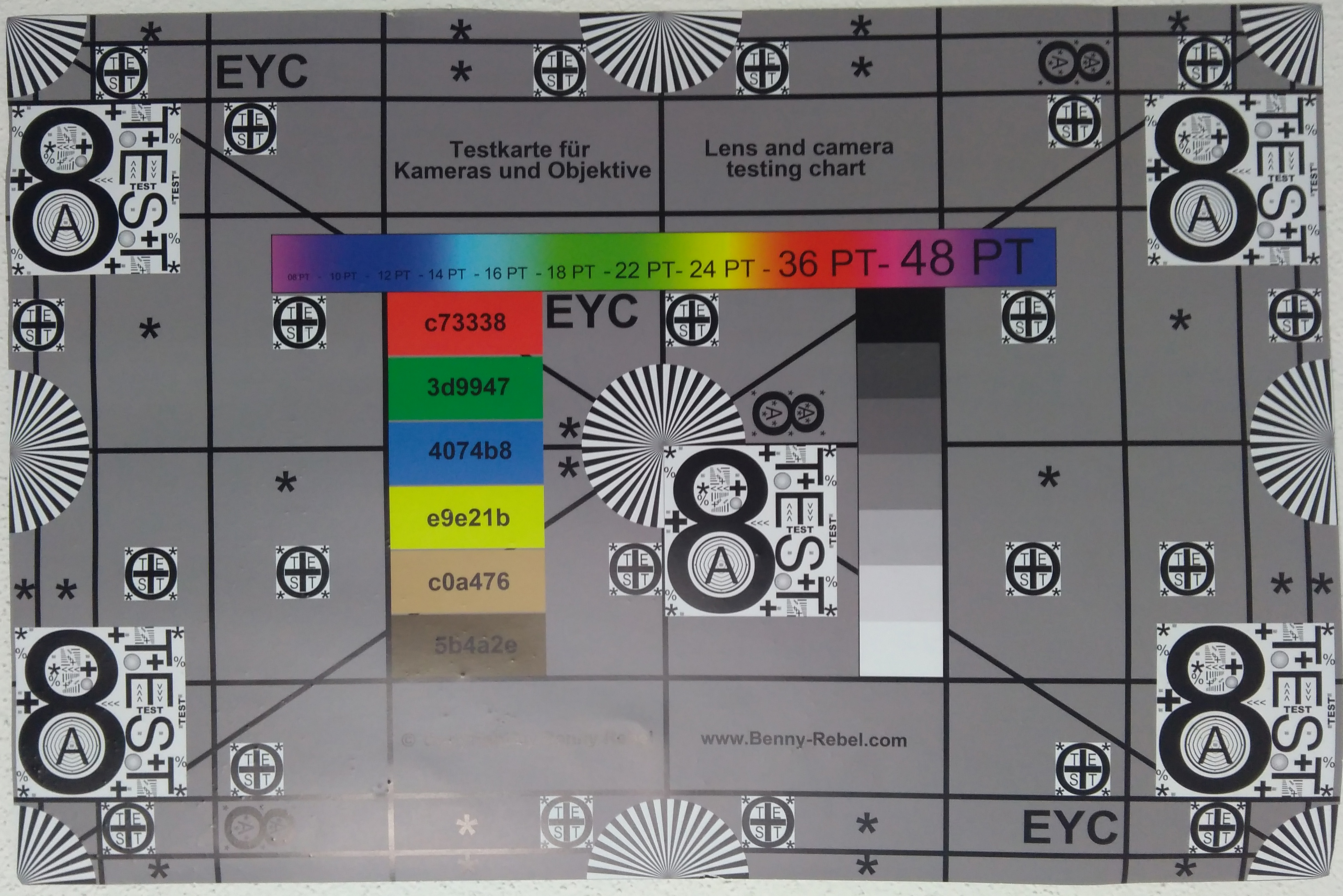 Anhand unseres Testcharts lässt sich gut die Schärfe der Aufnahmen beurteilen. Mit unscharfen und ausgefransten Kanten sowie gut sichtbaren Treppenverläufen bei diagonalen Bildstrukturen kann das Lenovo K6 hier nicht gerade begeistern.