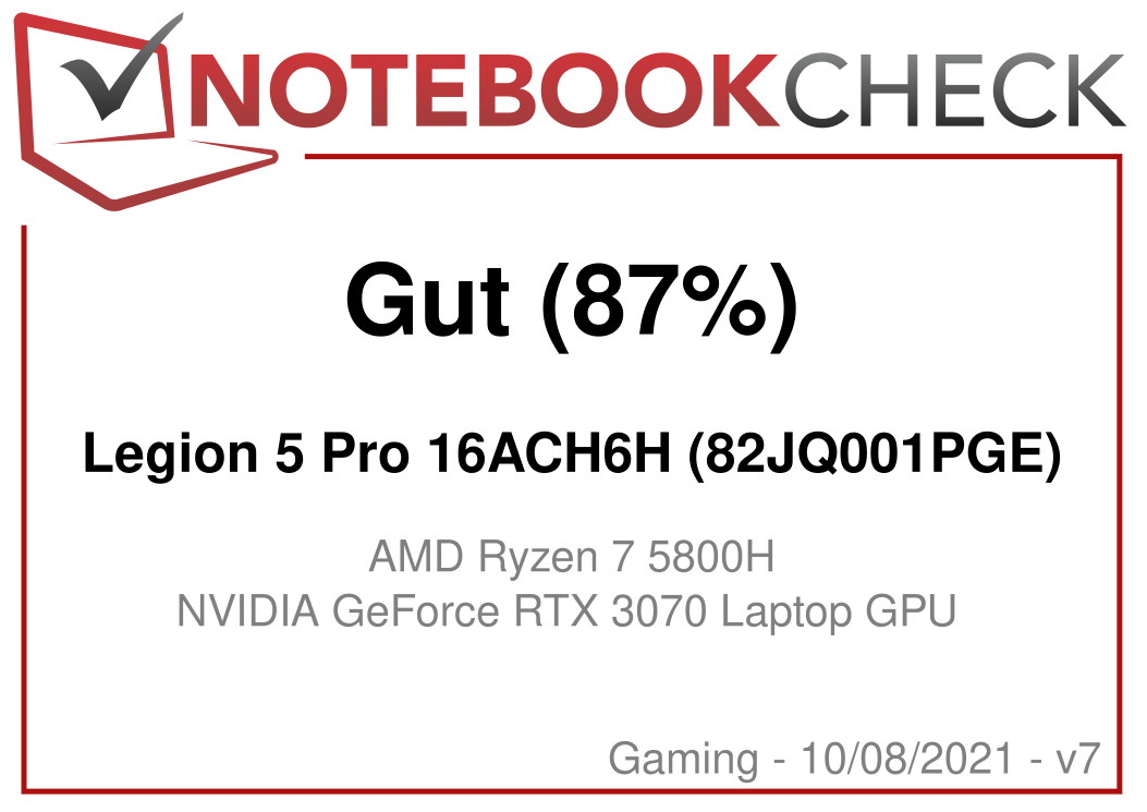 | 87.4 % v7 (old) | 08 / 2021 | Lenovo Legion 5 Pro 16ACH6H (82JQ001PGE) R7 5800H, GeForce RTX 3070 Laptop GPU | 2.6 kg | 26.85 mm | 16.00" | 2560x1600 | |