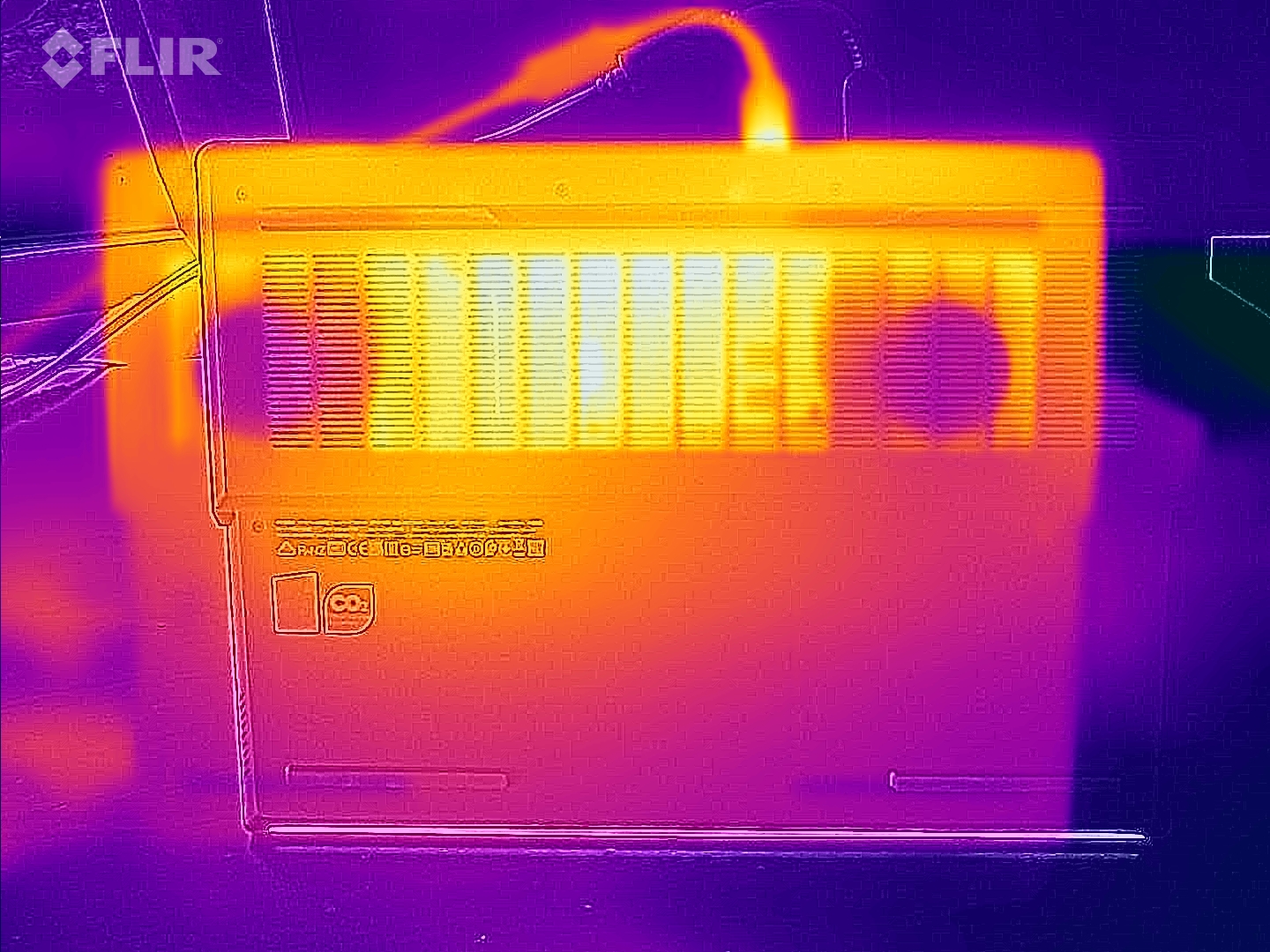 (-) Auf der Unterseite messen wir eine maximalen Wert von 49 °C (im Vergleich zum Durchschnitt von 43.3 °C).