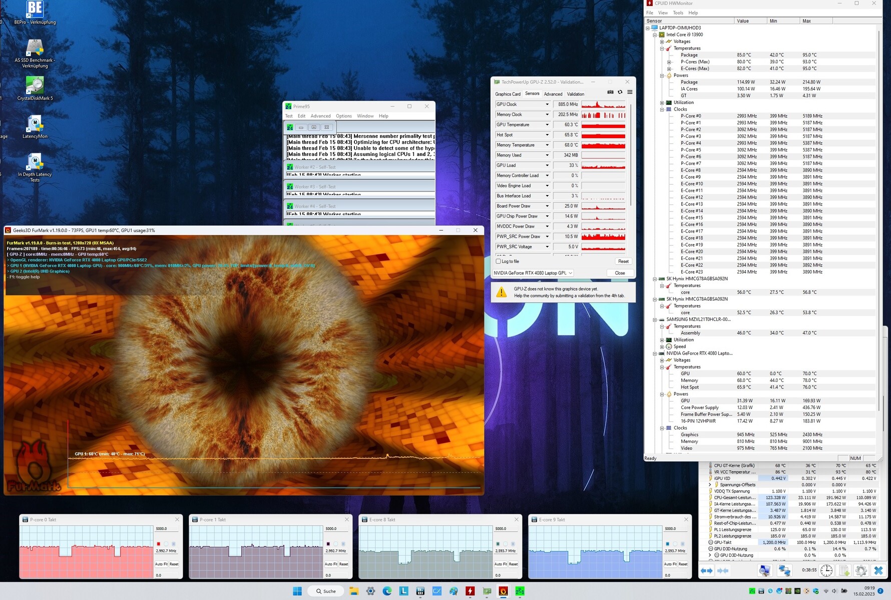 | Lenovo Legion Pro 7 16IRX8H i9-13900HX, GeForce RTX 4080 Laptop GPU | Razer Blade 16 Early 2023 i9-13950HX, GeForce RTX 4080 Laptop GPU | Lenovo Legion 7 16IAX7-82TD004SGE i9-12900HX, GeForce RTX 3080 Ti Laptop GPU | Lenovo Legion 7 16ACHg6 R9 5900HX, GeForce RTX 3080 Laptop GPU | Lenovo Legion 7 16ARHA7 R9 6900HX, Radeon RX 6850M XT | Durchschnitt der Klasse Gaming | |
