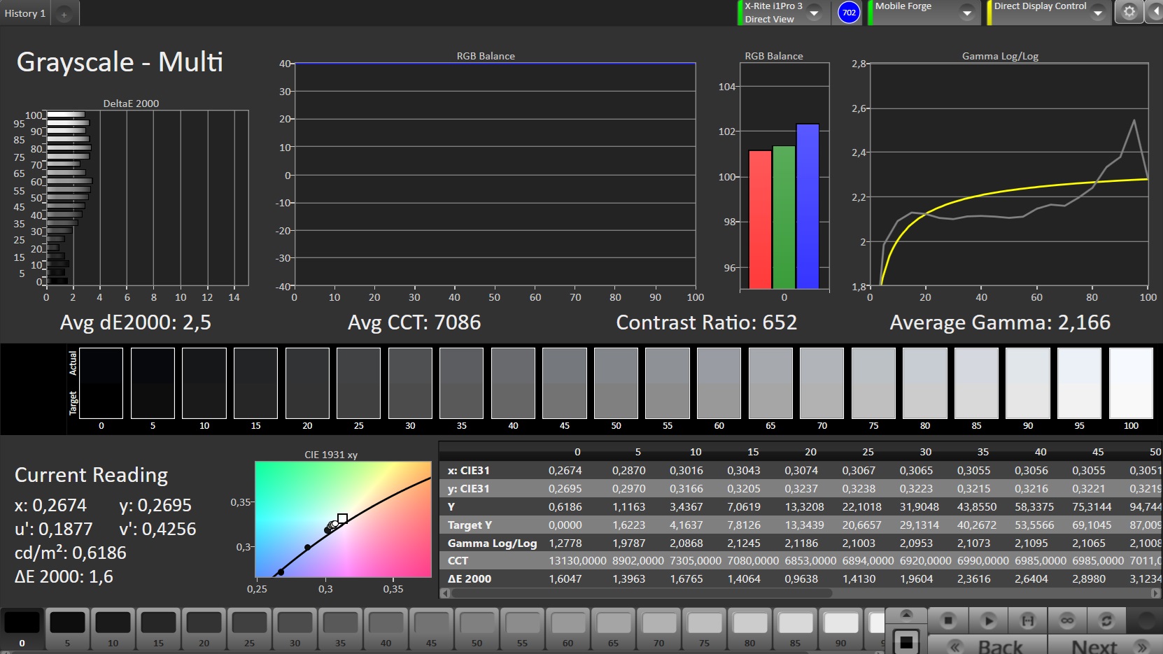 ΔE Greyscale Calman: 2.5 | ∀{0.09-98 Ø5}