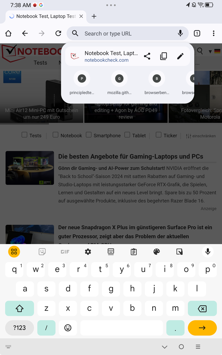 Wir messen unter längerer hoher Last eine Erwärmung auf bis zu 49,9 °C an der Außenseite des Tablets. Das ist schon deutlich spürbar und könnte bei hohen Umgebungstemperaturen auch noch mehr werden.