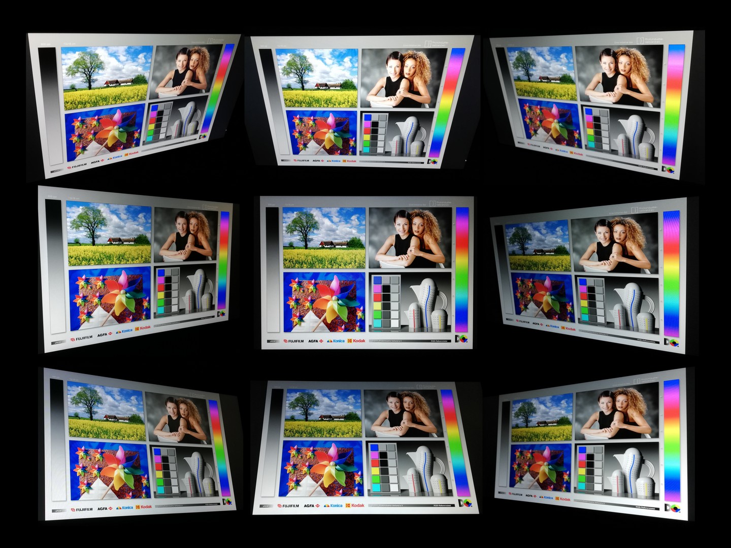 | Helligkeit Bildmitte (cd/m²) | 243 | 363 49% | 269 11% | 415 71% | 322.9 33% | 239 -2% |