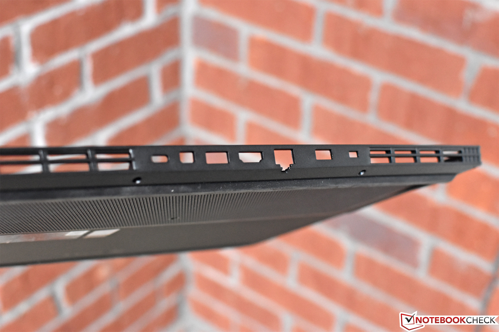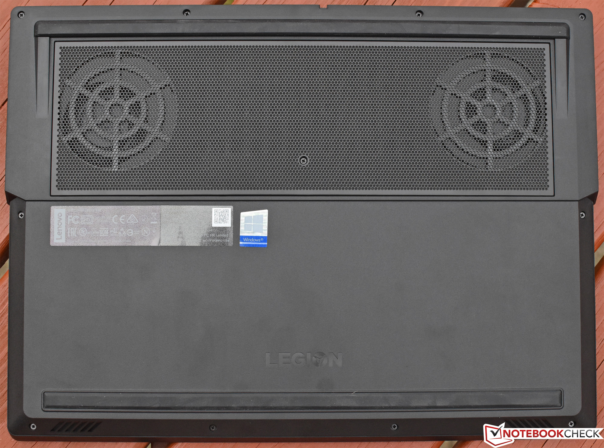 Die Stabilität des Gehäuses hat sich nicht verschlechtert. Obwohl das Gehäuse hauptsächlich aus Kunststoff besteht, ist das Legion Y530 auf einer harten Unterfläche beeindruckend stabil. Dazu tragen wahrscheinlich auch seine langen horizontalen Gummifüßchen (à la Dell XPS 15) bei. Entlang der gesamten Länge der Basiseinheit lässt sich das Gerät kaum eindrücken. Nur in der Mitte (zwischen Tastatur und Touchpad) gibt das Gehäuse unter mittlerem Druck leicht nach. Das große, zentrale Scharnier wurde nun durch zwei kleinere Scharniere an den Rändern ersetzt und auch die Lüftungsventile wurden von der Mitte an den Rand verschoben und um die Ecken gezogen. Auch auf der Bodenplatte hat sich die Lüftungsöffnung vergrößert, was einen besseren Luftzufluss an die zwei größeren, weiter auseinanderliegenden Lüfter ermöglicht.