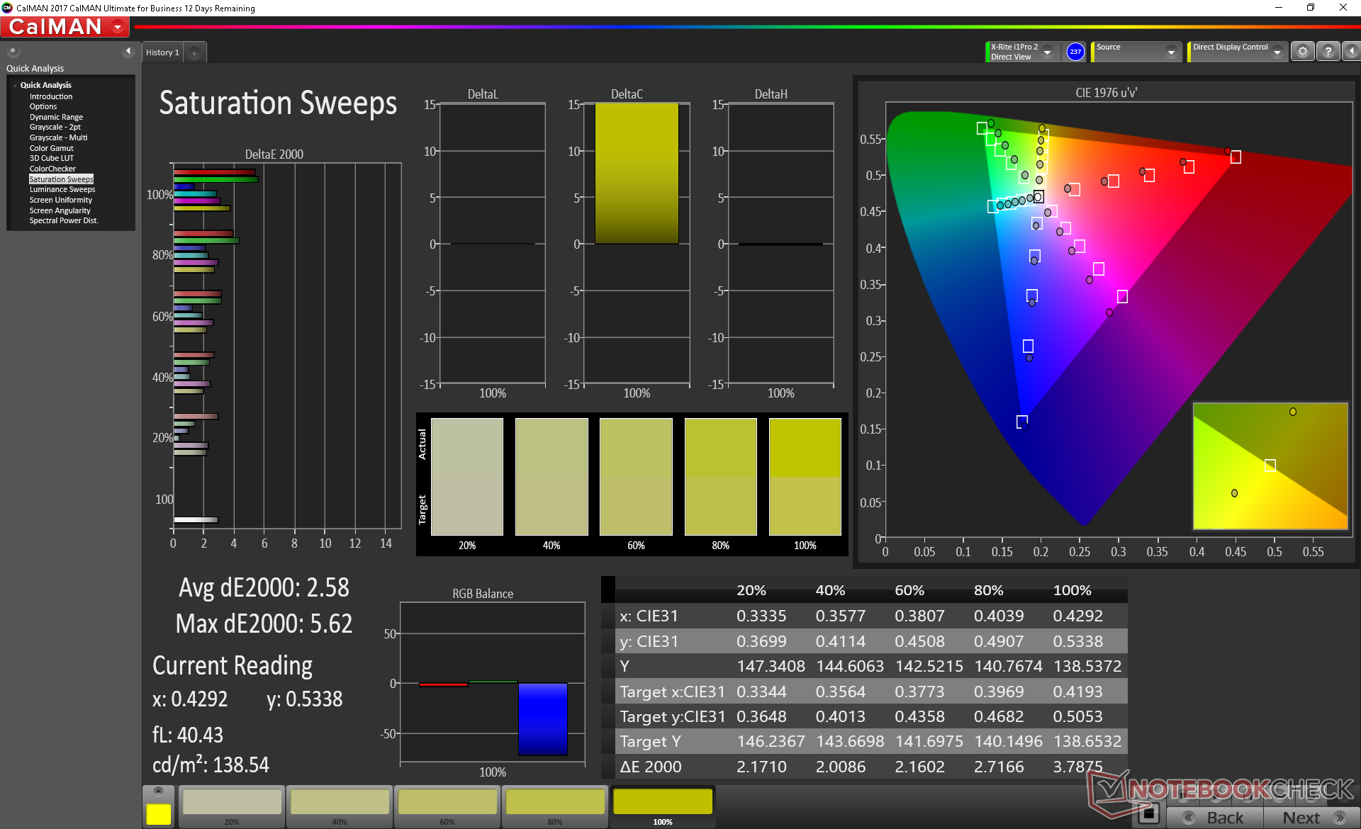 Die Messungen unseres Farbmessers ergaben nur durchschnittliche Farbgenauigkeits- und Graustufenwerte. Unsere Kalibrierungsversuche verbesserten die Werte des Bildschirms in jeder Hinsicht, weshalb wir Nutzern dies für möglichst genaue Farben und Graustufen empfehlen. Aufgrund der unvollkommenen sRGB-Farbraumabdeckung verfälschen höheren Sättigungsstufen die Farben dennoch.