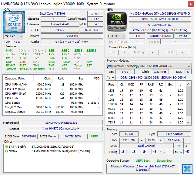 Test Lenovo Legion Y7000 (i7-8750H, GTX 1060) Laptop