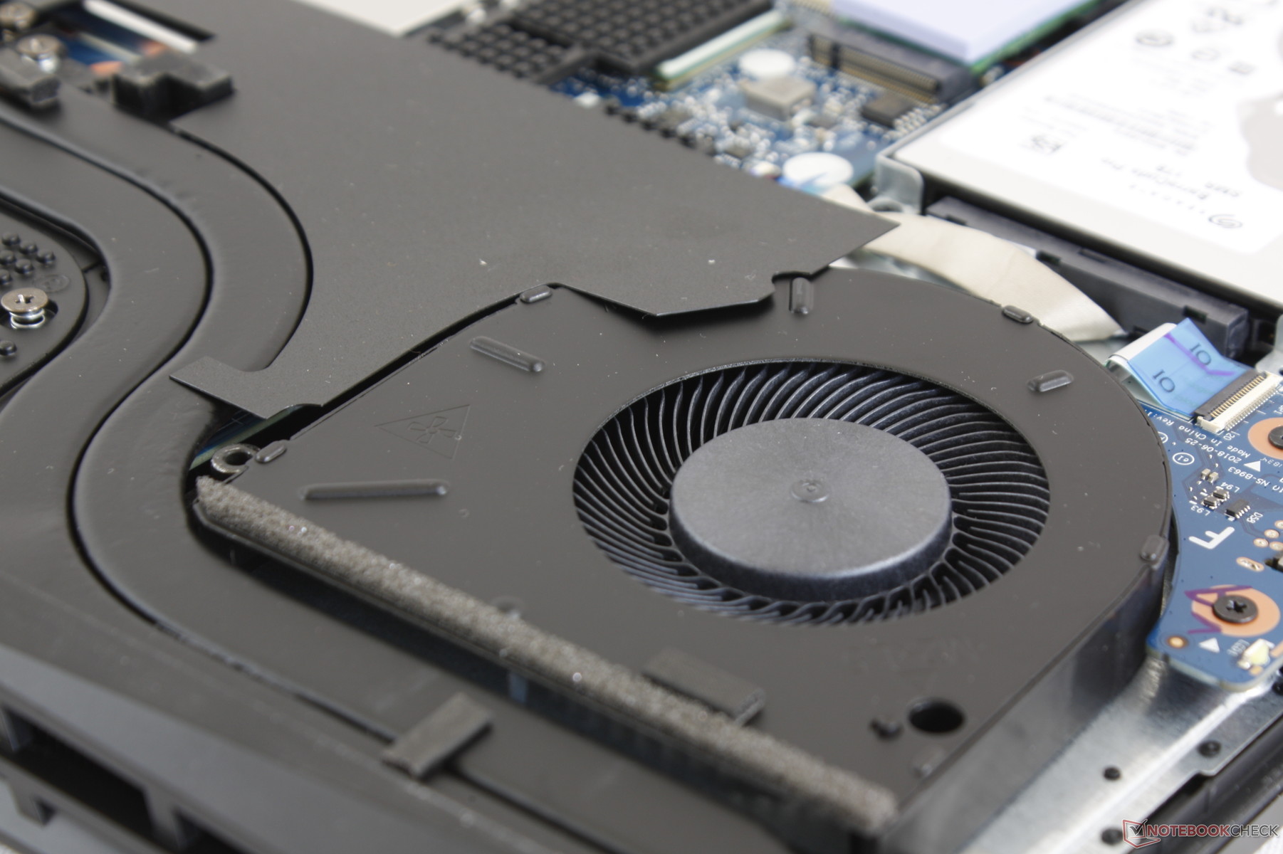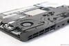 Nach dem Öffnen haben Nutzer direkt Zugriff auf den Akku, das WLAN-Modul, die zwei Festplattenschächte und die Kühllösung. Unpraktischerweise verbergen sich die zwei SODIMM-Steckplätze hinter einer Metallabdeckung.