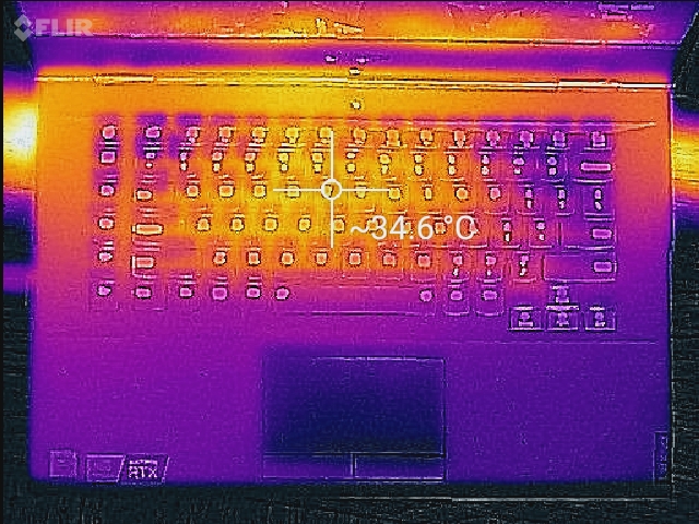 (+) Die Handballen und der Touchpad-Bereich sind mit gemessenen 29.2 °C kühler als die typische Hauttemperatur und fühlen sich dadurch kühl an.