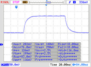 | 36 ms ... steigend ↗ und fallend ↘ kombiniert | ↗ 18 ms steigend | |