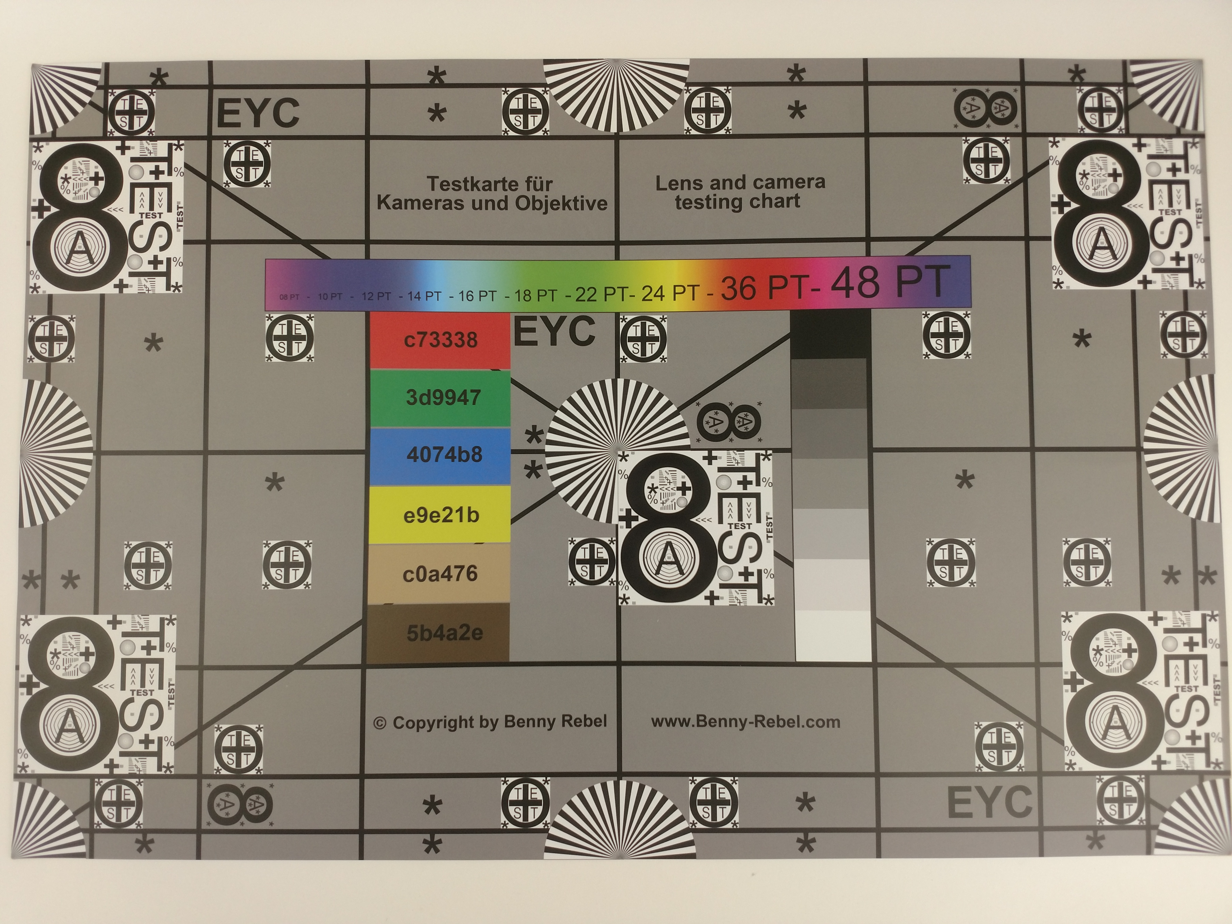 Auskunft über die Abbildungsleistung des Kamera-Objektivs sowie das Auflösungsvermögen des Sensors erhalten wir durch das Abfotografieren unseres Testcharts bei definiertem Kunstlicht. Hier zeigt sich vor allem in den beiden rechten Bildecken ein deutlicher Schärfeabfall – aber selbst in der Bildmitte ist das Auflösungsvermögen nicht gerade hoch, sodass feinere Konturen bereits verschwimmen. Dass dies andere Spitzenmodelle besser machen, zeigt der Vergleich mit den Smartphones Google Nexus 6P sowie Samsung Galaxy S7 Edge.
