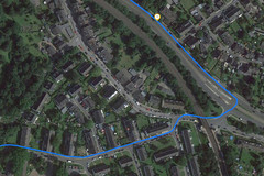Im Freien ermittelt das Moto Z den Standort zügig auf bis zu 3 Meter genau, in Innenräumen dauert dies mitunter etwas länger. Unsere Testrunde mit dem Fahrrad offenbart, dass das Smartphone die Strecke hin und wieder etwas gröber aufzeichnet als der Fahrradcomputer Garmin Edge 500: Insbesondere im Bereich der Brückenüberquerung kommt es so zu deutlich sichtbaren Abweichungen. Da die Differenz zwischen beiden Geräten insgesamt aber nur 1,8 Prozent der gefahrenen Strecke beträgt, solle dies für alltägliche Navigationsaufgaben dennoch kein Problem darstellen.