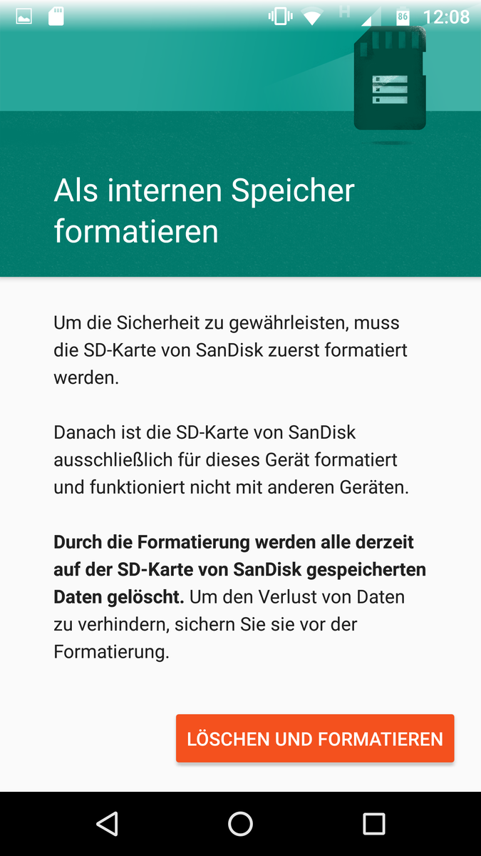 Im Auslieferungszustand sind 22,8 GB des verbauten 32-GB-Speichers noch nicht belegt. Wer auf die Dual-SIM-Funktionalität verzichtet, kann den Speicher durch den Einsatz einer microSD-Karte aktuell um bis zu 256 GB erweitern (theoretisch um bis zu 2 TB). Diese ist wahlweise als tragbarer oder als interner Speicher formatierbar, wobei erstere Option den Vorteil bietet, dass die auf der Karte abgelegten Daten auch für andere Geräte lesbar bleiben. Im Gegenzug können dann aber keine Apps auf der Speicherkarte installiert werden.