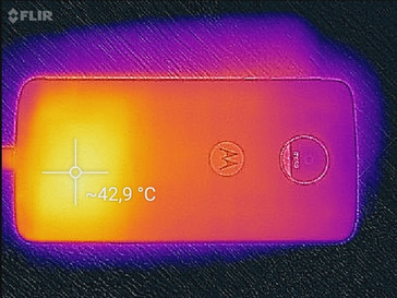 Gerade angesichts der sehr dünnen Bauweise des Moto Z liegt der Schluss nahe, dass das Gerät mit erhöhten Tempertaturen zu kämpfen haben könnte. Allerdings bleiben diese an der Oberfläche mit maximal 42,4 °C im üblichen Rahmen für leistungsstarke Smartphones, und auch subjektiv erwärmt sich das Gerät unter anhaltender Last nicht übermäßig. Kaum spürbar - aber messbar - sind die punktuell etwas erhöhten Ruhetemperaturen von rund 36 °C.