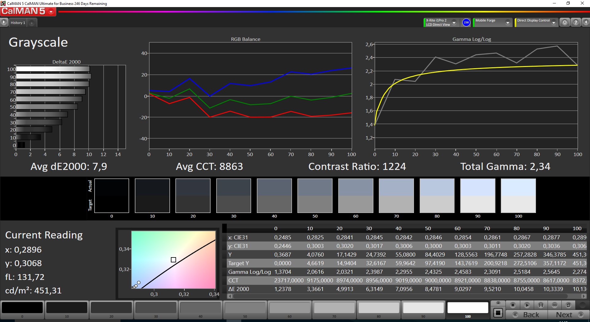ΔE Greyscale Calman: 7.9 | ∀{0.09-98 Ø5}