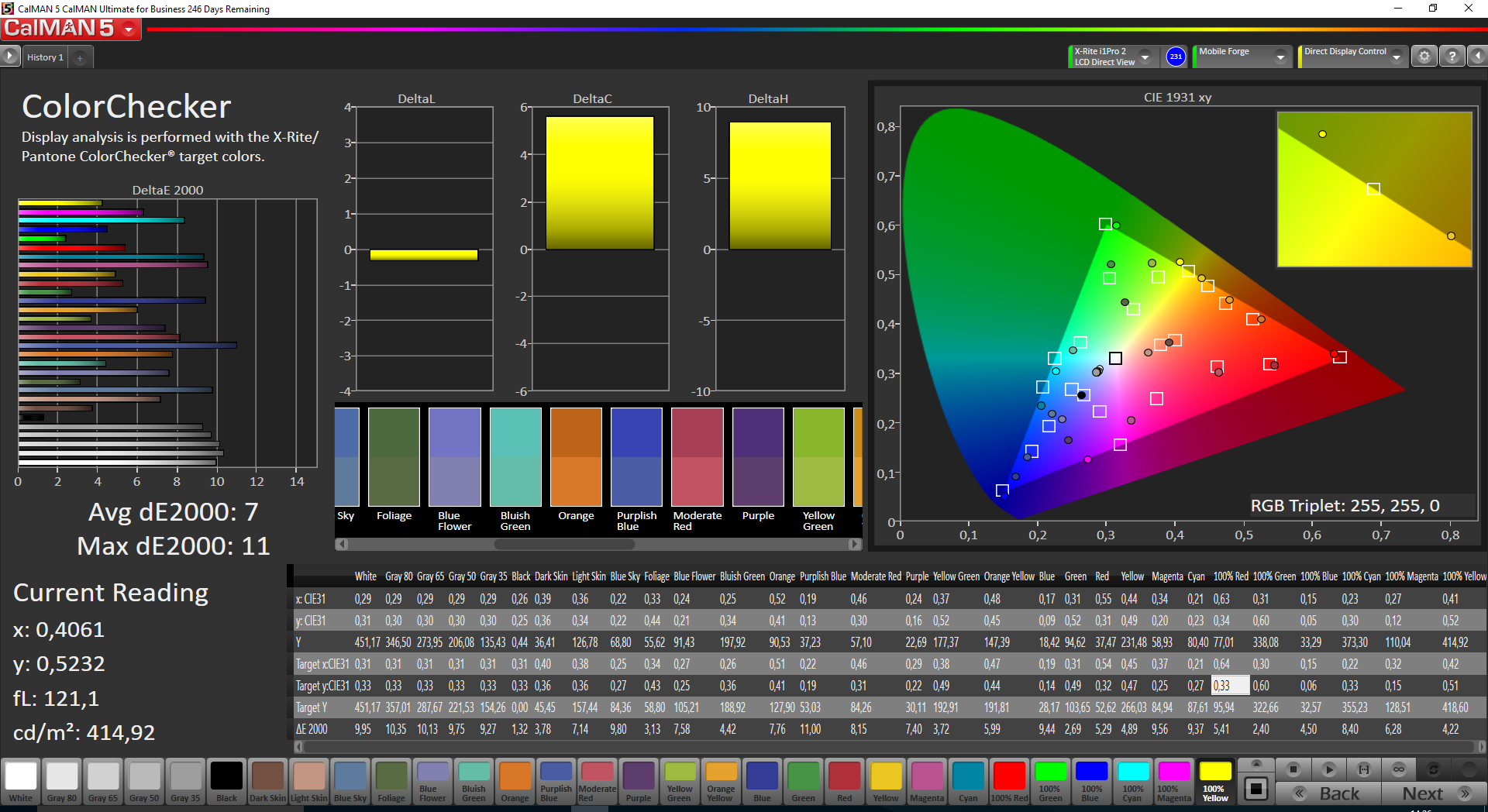 ΔE ColorChecker Calman: 7 | ∀{0.5-29.43 Ø4.78}