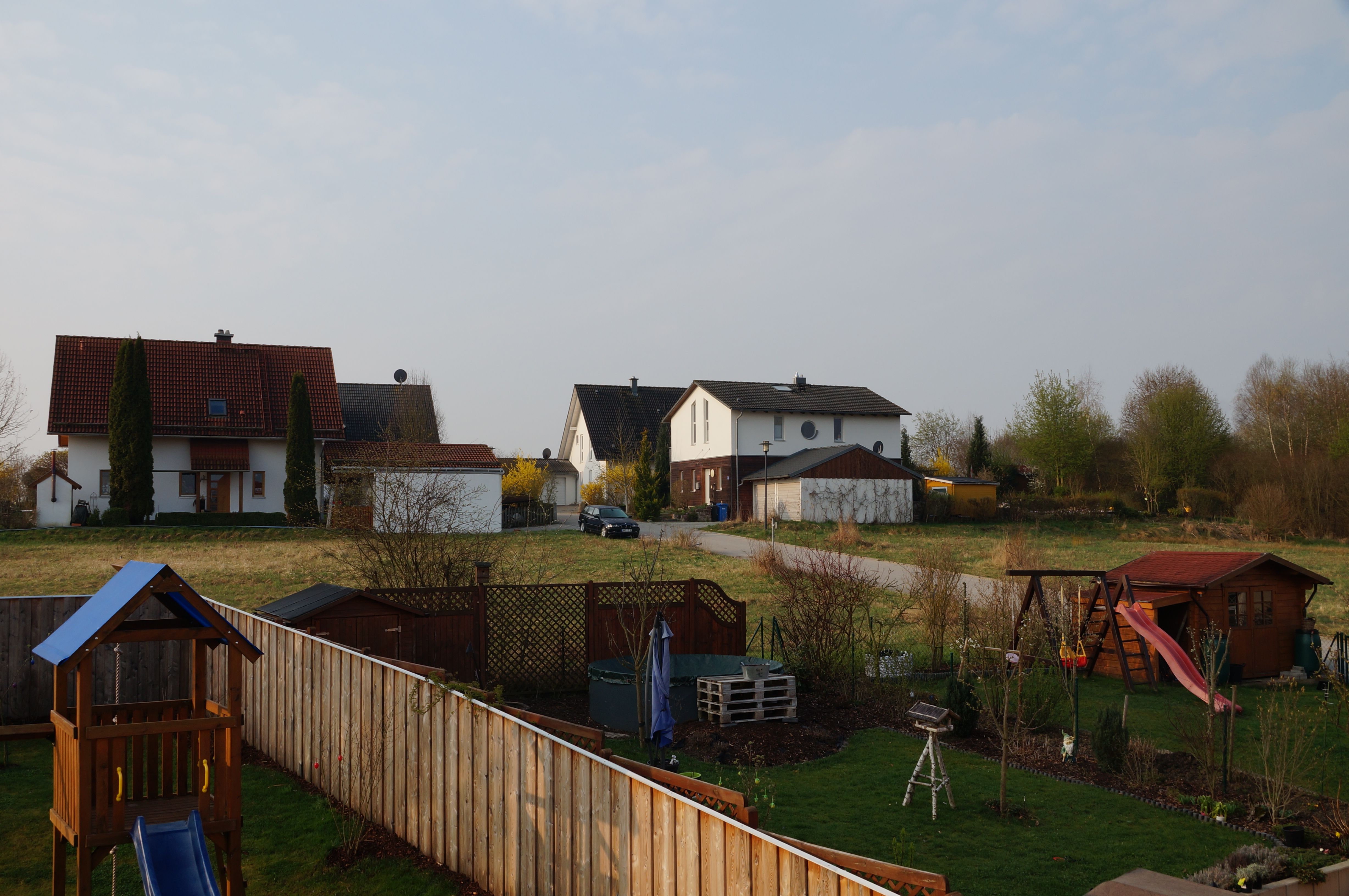 Die Aufnahmequalität der rückseitigen 16-MP-Kamera ist gut und die Farbdarstellung natürlicher als die des LG G3. Die Fotos leiden jedoch unter leichter Überbelichtung, was auf den Beispielbildern recht gut am sehr hell erleuchteten Rasen und den weißen Eimern zu erkennen ist. Der mit einer Fokussierungszeit von nur 0,3 Sekunden beworbene Autofokus funktioniert tadellos und ist verrichtet seine Arbeit deutlich zuverlässiger als bei günstigeren Konkurrenten. Die Bildschärfe gefällt uns insgesamt, und durch die hohe Belichtung ist die Zeichnung in dunklen Flächen sehr gut.