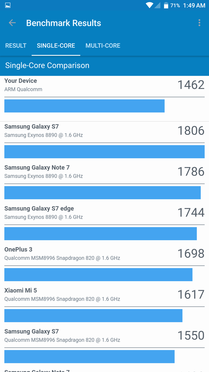 | Lenovo Phab 2 Pro 64 GB eMMC Flash | Huawei Mate 9 64 GB UFS 2.1 Flash | Google Pixel XL 2016 32 GB eMMC Flash | Sony Xperia XA 16 GB eMMC Flash | Samsung Galaxy S7 32 GB UFS 2.0 Flash | |